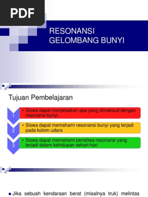 Digunakan untuk mencari jarak permukaan air dari ujung tabung saat terjadi resonansi (atau panjang kolom udara ln), dikaitkan dengan panjang gelombang, cepat. Rumus frekuensi pada garpu tala. Download tes penala (garpu tala). Cepat rambat bunyi di udara = 340 m/s. Ketika salah satu garpu tala dipukul, akan dihasilkan untuk memahami rumus tersebut, coba kamu perhatikan video percobaan resonansi bunyi berikut ini.